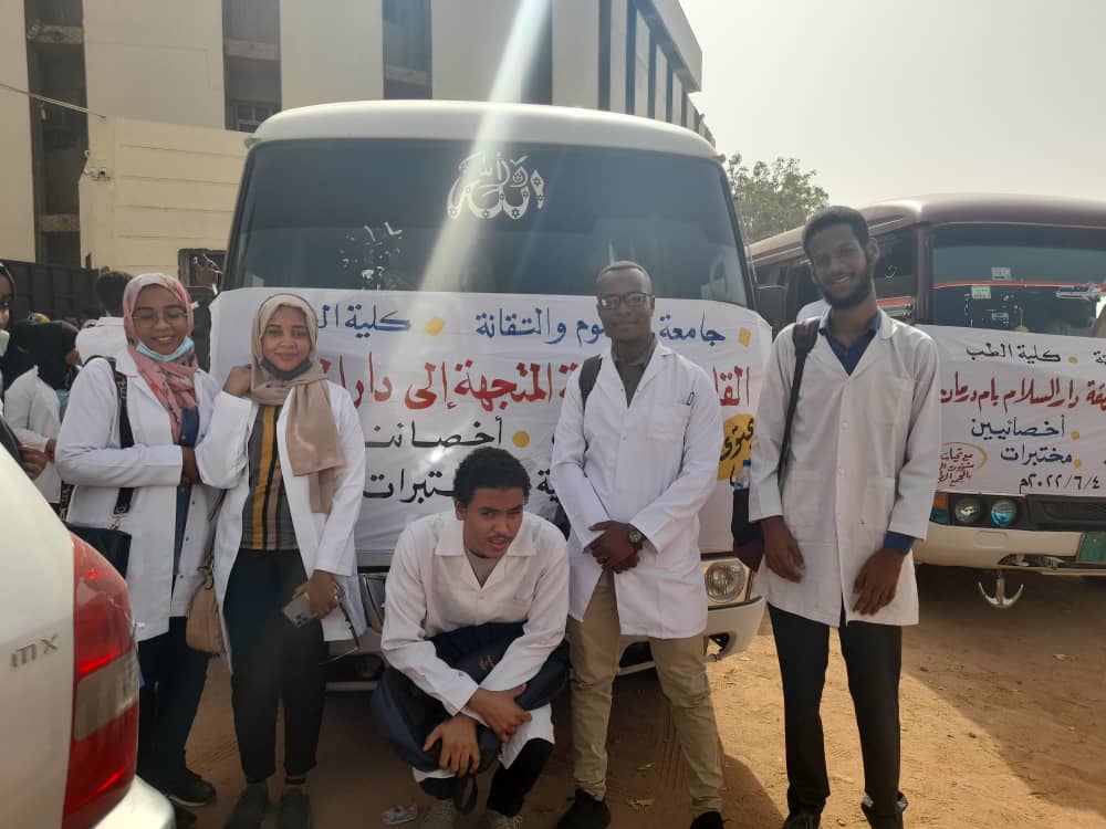سيّرت جامعة العلوم والتقانة قافلتها الطبية الثانية لحي دار السلام غرب سوق ليبيا والتي اشتملت علي يوم علاجي استفاد منه (101) مريضاً و(43) طفلاً وقال الدكتور يوسف على احمد سليمان إختصاص الباطنية أن الهدف من القافلة تقديم خدمة طبية لمواطني المناطق الطرفية والشرائح التي لاتصلها الخدمات الصحية موضحاً أنها المناطق الاكثر شيوعاً للامراض نتيجة البيئة التي يعيشون فيها وقال أن القافلة توصلت الى أن اكثر الامراض شيوعاً بالمنطقة هي امراض القولون العصبي نتيجة التوتر والاجهاد الذهني وكشف ان القافلة تضم اختصاصيين في الباطنية وامراض الاطفال من خريجي الدفعة (19) من كلية الطب وطلاب الدفعة (20)   قد استفاد منها (144) مريضاً بينهم (43) طفلاً  مشيراً الى أن القافلة احتوت على برنامج تثقيفي للوقاية من الامراض واضافت الدكتورة محاسن عبد البديع من قسم امراض الاطفال بان اطفال المنطقة يعانون من التهابات الحلق واللوزتين وأنهم ركزوا على توعية الامهات للاهتمام بالنظافة العامة والشخصية ومراقبة اطفالهن من جانبه قال رئيس وحدة شئون الطلاب بالمجمع الطبي أنها القافلة الثانية على مدي يوميين على التوالي وأنها جزءاً من سياسية الجامعة بتقديم خدمات للمجتمع في اطار مسئوليتها المجتمعية مشيراً الى أنها خطة استراتيجية تجد الاهتمام من قيادة الجامعة باستهداف المناطق الطرفية وقيام ايام علاجية تشتمل على معاينة الطبيب واجراء الفحوصات الطبية وصرف الادوية بجانب المحاضرات التثقيفية لتفادي الامراض وقالت الدكتورة رشا ميرغني والتي اشرفت علي القافلة انهم قدموا فحوصات للمواطنين الذين ترددوا عليهم في العيادات فحوصات مجانية شملت فحوصات روتينية للامراض المزمنة والقاوت والتايفويد والملاريا والبولينا وقالت دكتورة رشا إن صيدلية مجانية قد رافقتهم في الحملة الصحية وأن كل المرضي تلقوا ادويتهم مجاناً وتعتبر قافلة دار السلام الثانية علي التوالي بعد قافلة الثورة الحارة الثانية والتي تلقي فيها المرضى ذات الخدمات العلاجية بذات الطاقم الطبي